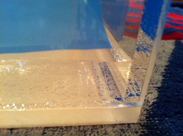 Time for the big test of my work: seeing if the acrylic box has any leaks in it.  My thinking is that if it can hold water successfully, it will probably be able to hold mineral oil no problem.